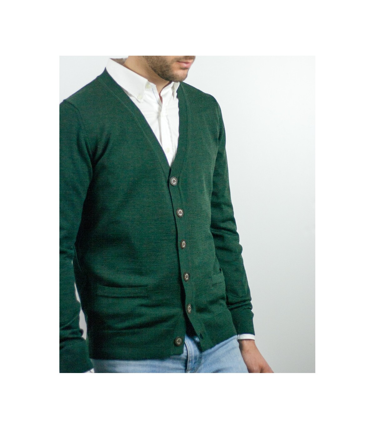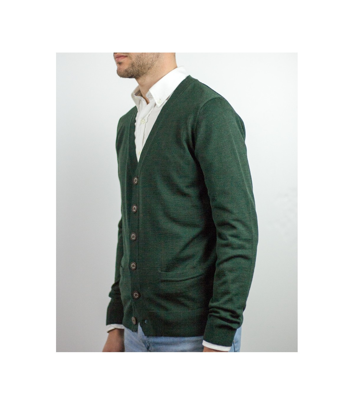 • DARK GREEN BUTTON CARDIGAN MERINO WOOL BLEND