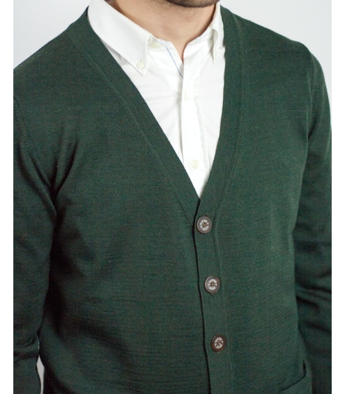 DARK GREEN BUTTON CARDIGAN MERINO WOOL BLEND
