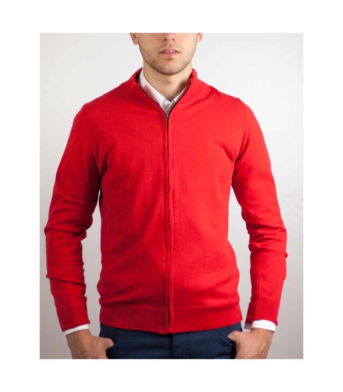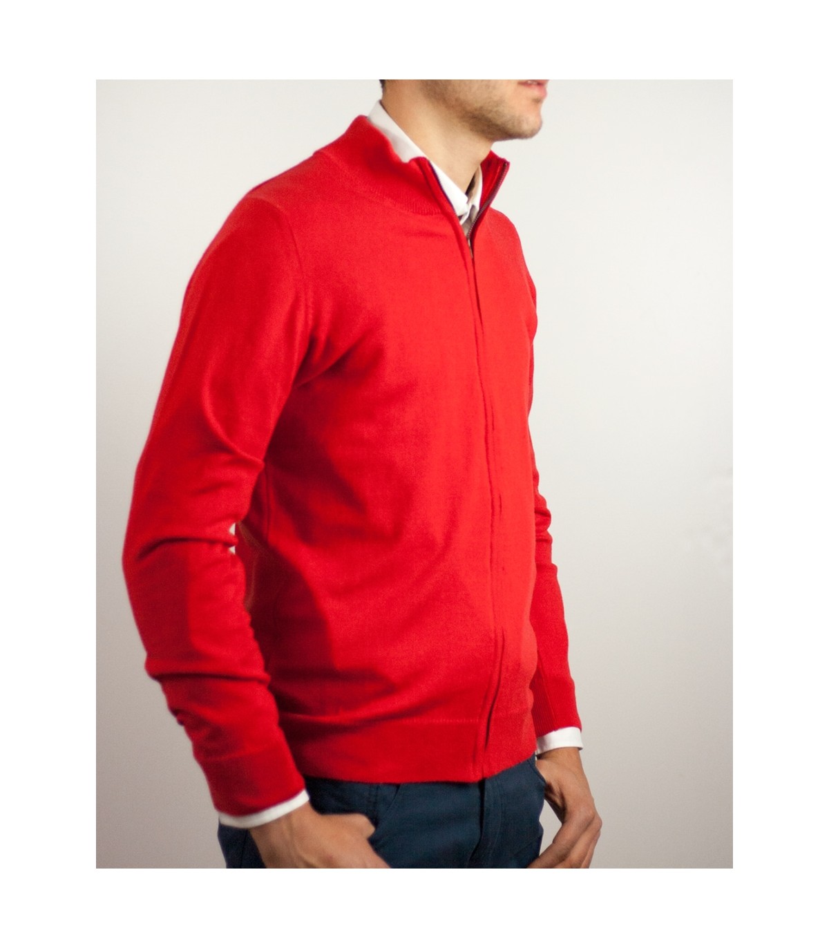 CHAQUETA CREMALLERA ALGODÓN ORGÁNICO ROJO